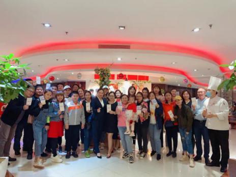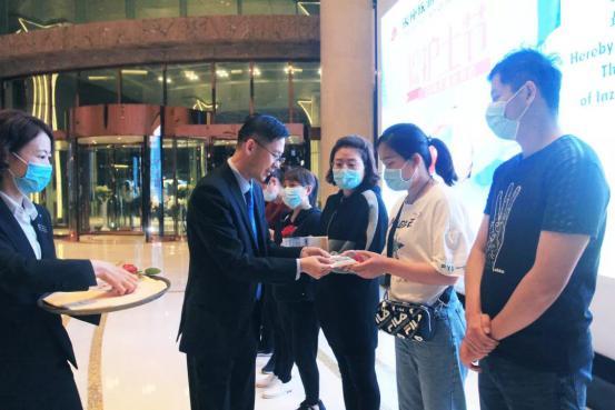 上善坊主管吳永菲得知三家醫院工作人員將前往佳悅酒店就餐后,緊急組織服務人員準備互動節目致敬白衣天使。有醫生感動地說,“進店之后感受到了酒店工作人員的熱情服務,心里暖暖的”。