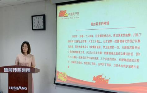 7月1日,正值中國(guó)共產(chǎn)黨建黨99周年之際,為進(jìn)一步增強(qiáng)黨員先鋒意識(shí),激發(fā)黨組織戰(zhàn)斗活力,魯商傳媒黨委開展“我來講黨課”活動(dòng)。本次活動(dòng)邀請(qǐng)山東戰(zhàn)“疫”最美新聞工作者、山東商報(bào)記者劉慶英,為黨員干部講黨課《記著,學(xué)著》。魯商傳媒黨委書記、董事長(zhǎng)孫超,黨委副書記、總經(jīng)理、總編輯龐道鋒出席活動(dòng)。