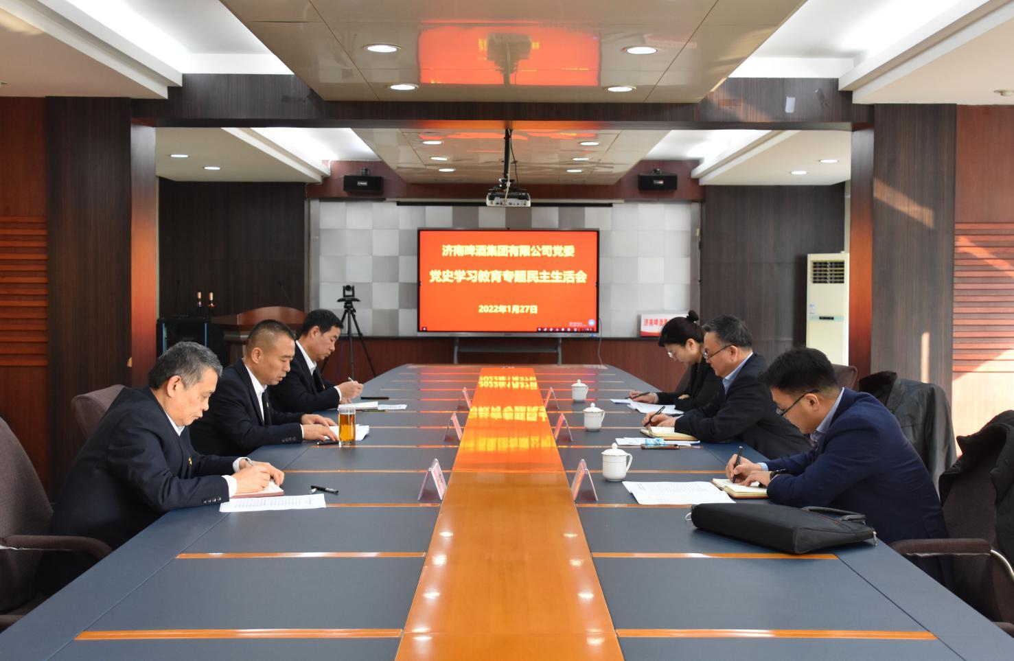 1月27日,濟啤集團黨委召開黨史學習教育專題民主生活會。集團黨委第六督導組組長、黨委常委、董事、總審計師、工會主席劉德華到會指導,濟啤集團黨委書記、董事長周雷主持會議。