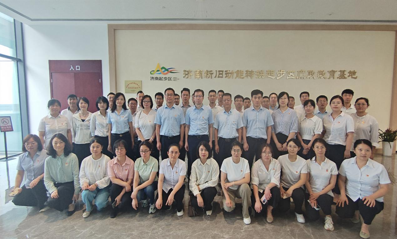 隨后,一行人赴濟南市新舊動能轉換起步區廉政教育基地接受廉政教育。在基地講解員的引導下,大家先后參觀了“泉廉之韻,傳承古今”“開天辟地,立黨為公”“自我革命,行穩致遠”“重拳反腐,警鐘長鳴”“黃河戰略,未來之城”五個主題展區。場館突出“以史為鑒”“以案為鑒”“以人為鑒”,通過專業講解、圖文介紹、視頻觀看、場景體驗等方式,系統回顧了黨的紀律建設歷程,全面展現了新時代以來深入推進全面從嚴治黨取得的巨大成就,深刻剖析了近年來違紀違法的典型案例,引導黨員們深刻領悟我們黨堅定不移推進全面從嚴治黨、把紀律和規矩挺在前面的實踐探索,為大家上了一堂生動而深刻的黨課。參觀活動結束后,全體黨員面對鮮紅的黨旗,重溫入黨誓詞,鏗鏘有力地許下錚錚誓言。
