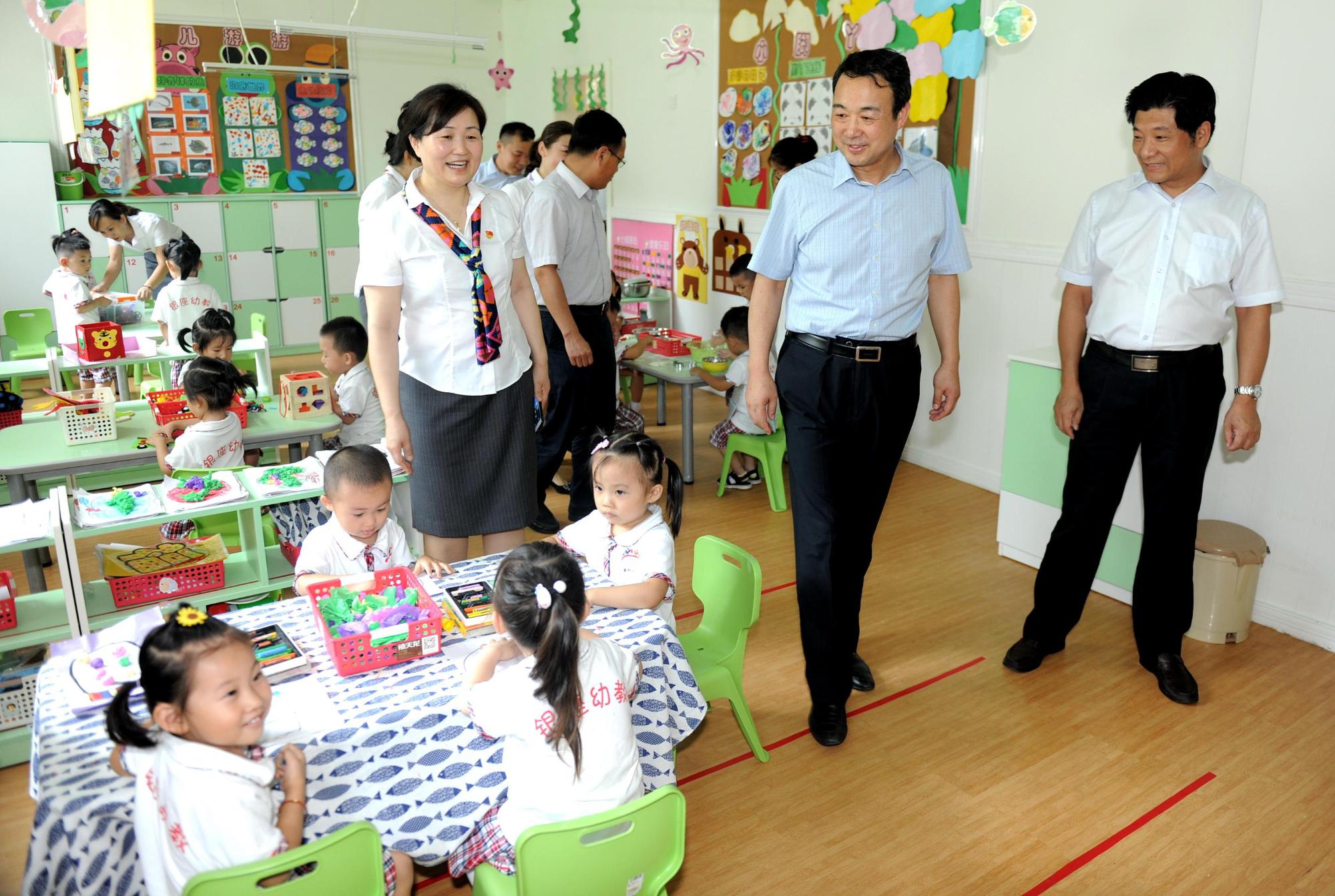 7月24日,魯商集團黨委書記、董事長高洪雷到山東銀座·英才幼教集團(簡稱銀座幼教集團)調研座談,并查看了銀座幼教集團總部、豐奧華府分園、魯商集團幼兒園。魯商集團黨委副書記劉守亮等陪同。