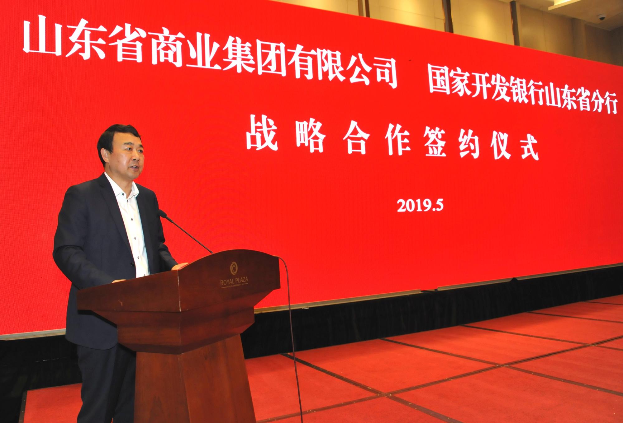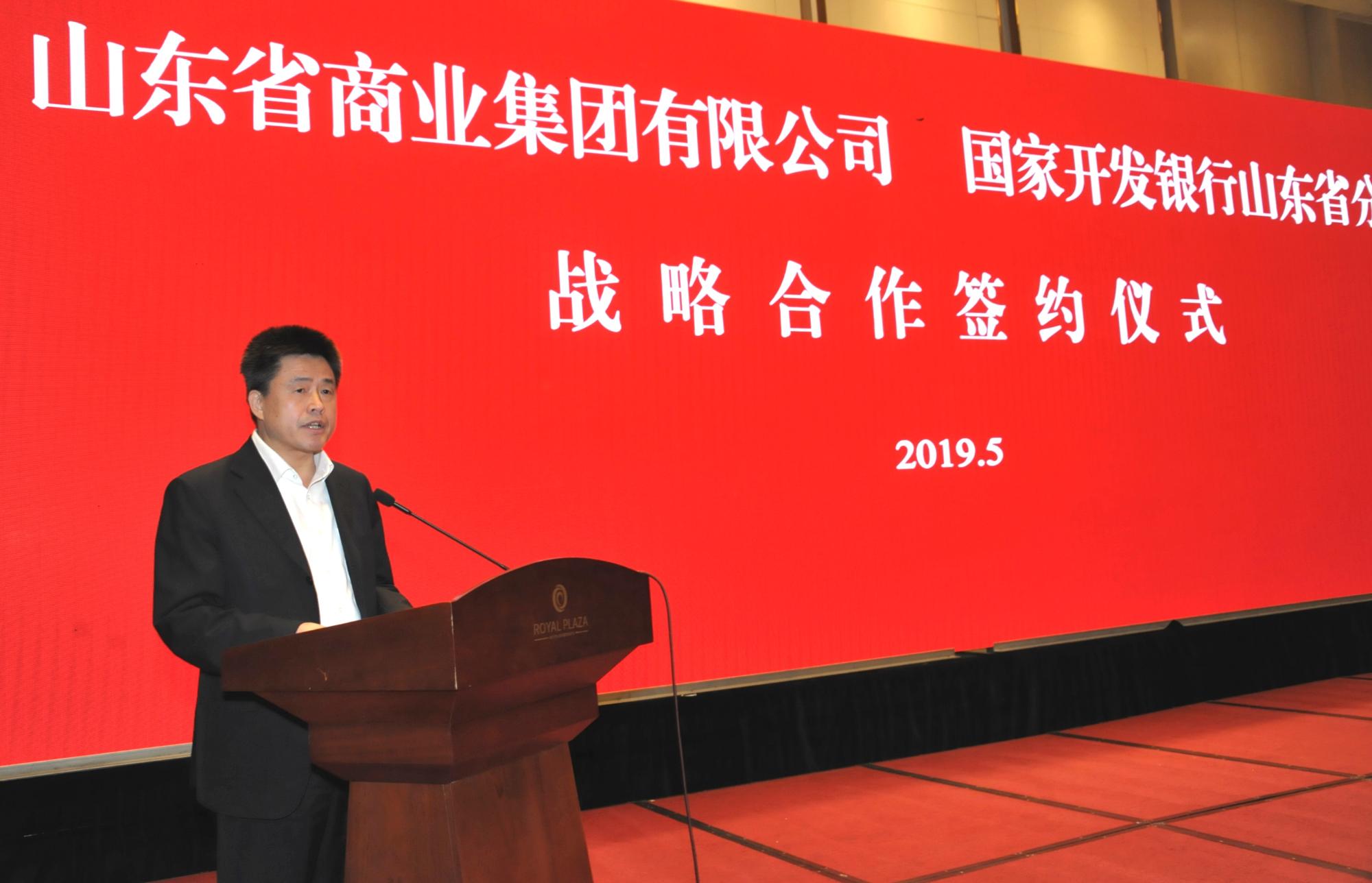 高洪雷在致辭中就國(guó)開(kāi)行山東分行多年來(lái)對(duì)魯商集團(tuán)的支持表示感謝。他說(shuō),集團(tuán)2018年?duì)I業(yè)規(guī)模同比增長(zhǎng)12.44%,利潤(rùn)同比增長(zhǎng)56.91%,今年1-4月報(bào)表利潤(rùn)同比增長(zhǎng)50.18%。下一步,魯商集團(tuán)將繼續(xù)堅(jiān)持“穩(wěn)中求進(jìn),穩(wěn)中求變”工作總基調(diào),以“改革年”活動(dòng)為抓手,履行“服務(wù)山東大局,服務(wù)人民大眾”兩大使命。在新舊動(dòng)能轉(zhuǎn)換的時(shí)代要求下,集團(tuán)將積極打造鄉(xiāng)村振興齊魯樣板魯商樣板片區(qū),致力于精準(zhǔn)扶貧。同時(shí),繼續(xù)實(shí)施“創(chuàng)新驅(qū)動(dòng)、人才引領(lǐng)、品牌帶動(dòng)”三大戰(zhàn)略,推進(jìn)“扭虧、降負(fù)債、資產(chǎn)提升”三大硬任務(wù),努力實(shí)現(xiàn)輕資產(chǎn)發(fā)展、智能化發(fā)展、資本化發(fā)展、合作化發(fā)展,不斷推動(dòng)集團(tuán)做強(qiáng)做優(yōu)做大。