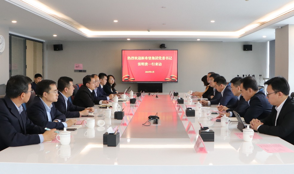 4月24日,新希望集團黨委書記、新希望六和股份有限公司執行董事長、總裁張明貴到訪魯商集團,集團黨委副書記、董事、副總經理朱華建熱情接待并舉行座談。