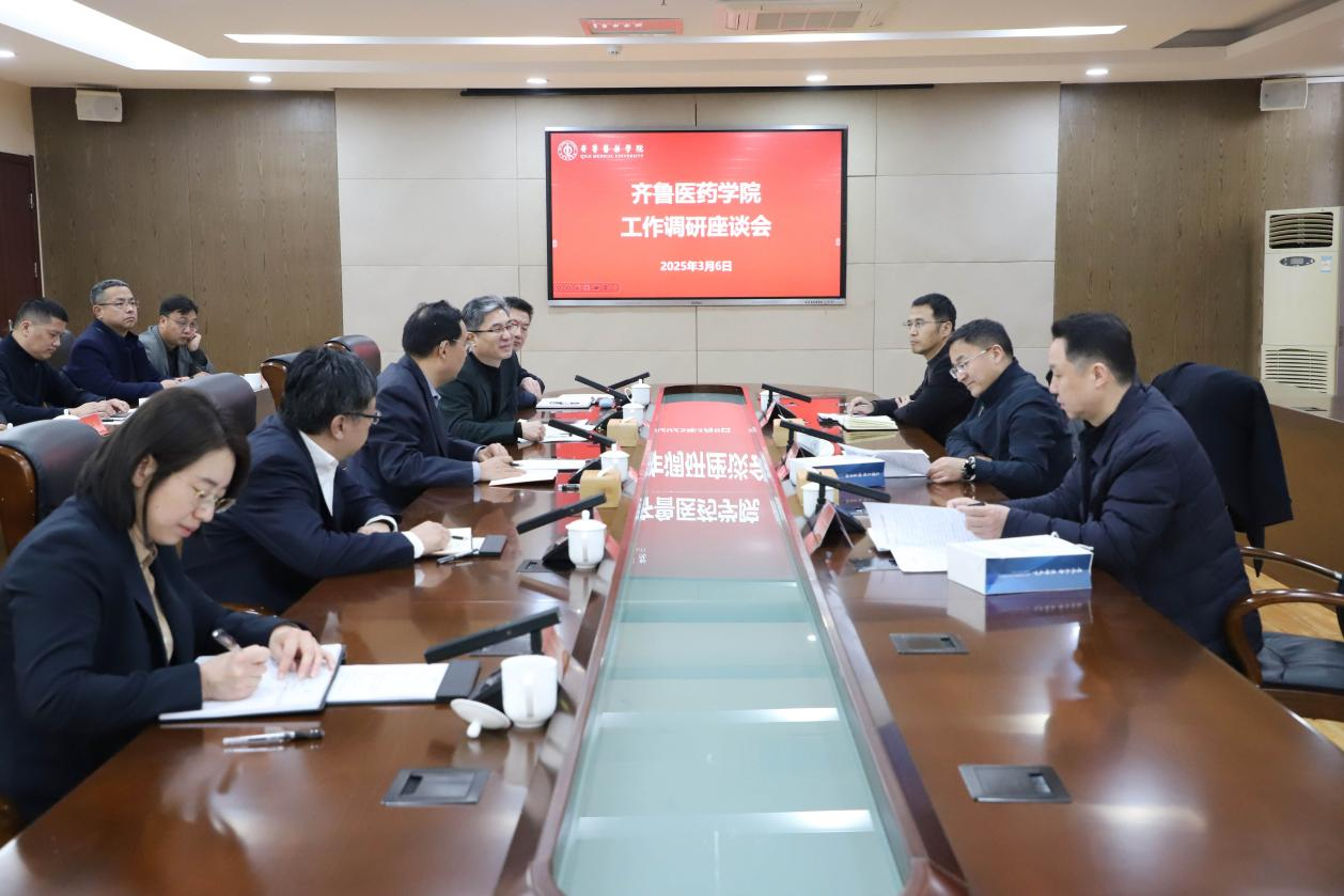 3月6日,魯商集團黨委副書記、董事、總經理朱華建一行到齊魯醫藥學院調研指導工作。
