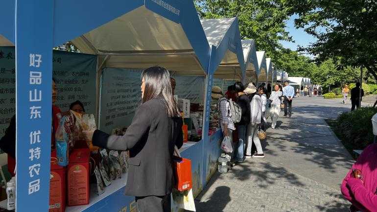 活動現場設置三大特色展區:室內展銷區聚焦糧油、水果等7大品類,展出煙臺蘋果、三文魚、膠東海參、壽光蔬菜等優特農產品;沿蘇州河步道打造“山東小吃街”,呈現舌尖上的齊魯風味;在推廣中心設置齊魯農超、16市展臺,并展出魯商“一盤貨”及精選外貿優品。