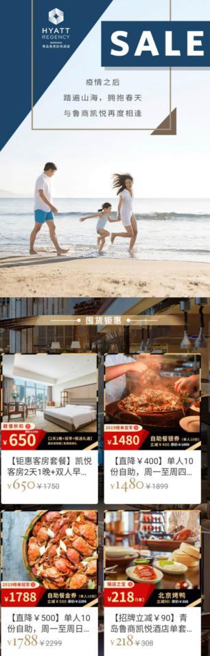 疫情期間,青島魯商凱悅酒店靈活應變,通過官方微信商城推出迎春預售活動彌補缺口。此次銷售幾乎涵蓋所有酒店熱銷產品,達到了預熱高端餐飲市場的效果,為后期的消費爆發(fā)打好基礎。 自2月28日晚8點上線到3月8日中午12點,酒店銷售額已經超過11萬元,預計帶來的婚宴銷售將達50萬元,目前線上銷售還在火爆進行中。在銷售產品的過程中,酒店潛心維護目標粉絲會員體系,通過粉絲群、會員活動等增強彼此的信任與依賴,增加目標客戶群體的粘性。同時,酒店積極嘗試婚宴和會議銷售“云簽約”,探索經營新模式、開拓新思路的創(chuàng)新實踐,也為酒店其他業(yè)務的發(fā)展提供了良好的范例。