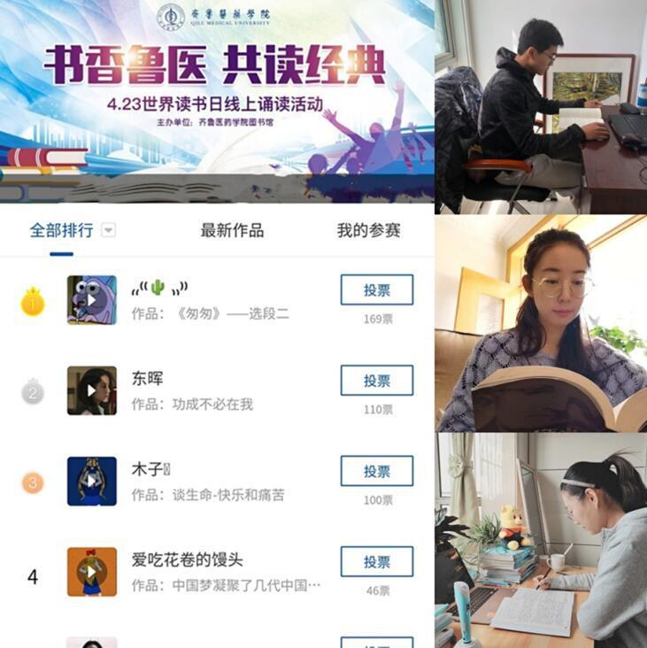 為響應集團“新時代·新使命·新愿景”讀書活動號召,充分發(fā)揮圖書館職能,大力營造全員閱讀的濃厚氛圍,在4月23日“世界讀書日”來臨之際,齊魯醫(yī)藥學院圖書館開展“書香魯醫(yī),共讀經(jīng)典”線上誦讀活動,與廣大師生“云”讀書,共沐書香。