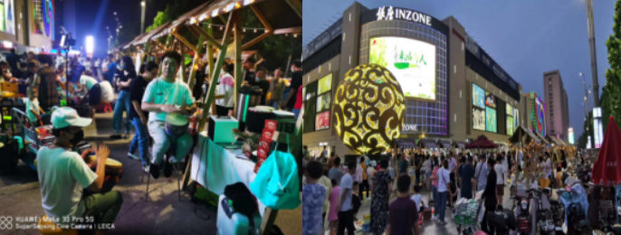 菏澤和諧廣場“星空夜市”規劃攤位100余個,涉及兒童娛樂、人氣小吃、服飾箱包、手工制作、創意定制等多種業態,打造“潮流街區”“汽車后備箱創意集市”“時尚美食廣場”三大主題板塊,緊貼民生,促進當地消費市場的繁榮活躍,助力夜經濟發展。