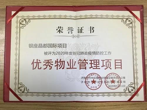 近日,濟南市市中區精神文明建設委員會、市中區住房和城鄉建設局發布《關于表彰新冠肺炎疫情防控工作防疫先鋒物業管理辦公室、優秀物業服務企業、優秀物業管理項目、優秀物業人的決定》。魯商物業所管理的銀座晶都國際項目被評為“優秀物業管理項目”,項目員工張慧穎、張同因表現突出被評為“優秀物業人”。