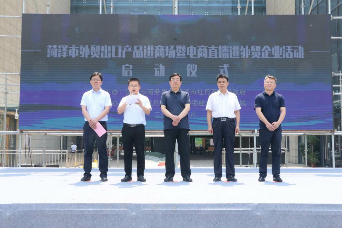 6月24日上午,菏澤市商務局、牡丹區人民政府聯合主辦的“菏澤市外貿出口產品進商場暨電商直播進外貿企業”活動啟動儀式,在菏澤和諧廣場隆重舉行。菏澤市商務局黨組書記、局長耿振華出席儀式并致辭,牡丹區副區長葛廣勛主持。