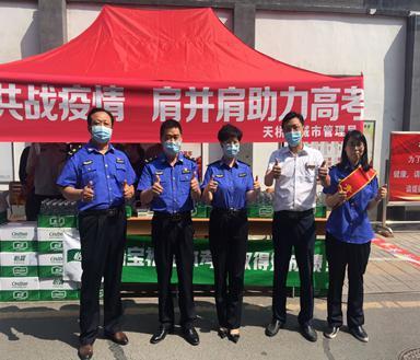 淄博高青店組織員工奔赴高青一中西門口為莘莘學子愛心送水,為考生們鼓勁加油,為在烈日下焦灼等待的家長送一份清涼!