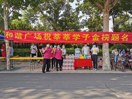 濟南和諧廣場在濟南第九中學考點門口設立“暖心服務臺”,為考生及陪考的家長們發放免費礦泉水、消毒濕巾,同時發放200張定制的暑期學生專屬優惠卡,為考生們加油打氣,員工們遞出去的每一瓶水,都飽含著大家滿滿的祝福與期許。