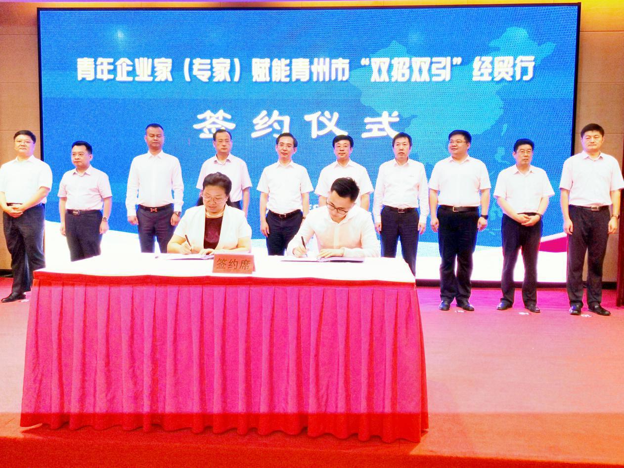 8月28日,由省青聯(lián)、省青企協(xié)與青州市委、市政府共同主辦的青年企業(yè)家(專家)賦能青州市“雙招雙引”經(jīng)貿(mào)行活動開幕。山東商院受邀參加活動,副院長徐紅代表學(xué)校與新松智能制造公共服務(wù)平臺(青州)有限公司簽訂產(chǎn)教融合合作協(xié)議。