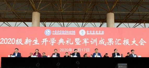 10月17日下午,山東商院、齊魯醫藥學院商學院2020級新生開學典禮暨軍訓成果匯報大會在校本部體育場舉行。學校領導班子,行政部室、二級院部負責人出席,副院長徐紅主持,各學院學生教育管理工作人員、2020級全體新生參加。