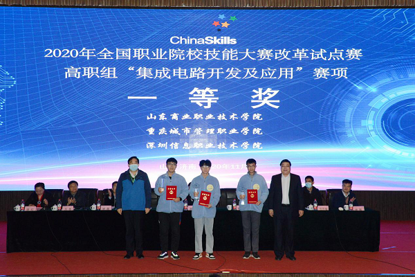 11月28日至30日,2020年全國職業(yè)院校技能大賽改革試點賽“集成電路開發(fā)及應用”賽項(高職組)比賽在山東商院舉辦,來自全國28個職業(yè)院校的84名選手參加了本次比賽。經過兩天的角逐,山東商院、重慶城市管理職業(yè)學院、深圳信息職業(yè)技術學院獲得一等獎。