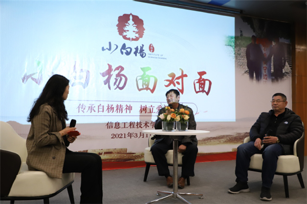 程富勝在學(xué)術(shù)報告廳為信息工程技術(shù)學(xué)院全體師生講述了“小白楊”背后的故事。他表示:“軍旅曲目《小白楊》家喻戶曉、經(jīng)典傳唱,‘小白楊精神’不僅是軍人戍邊、保衛(wèi)國家的精神所系,更是激勵一代代青年人扎根祖國最需要的地方、傲立挺拔、報效祖國的精神動力。”