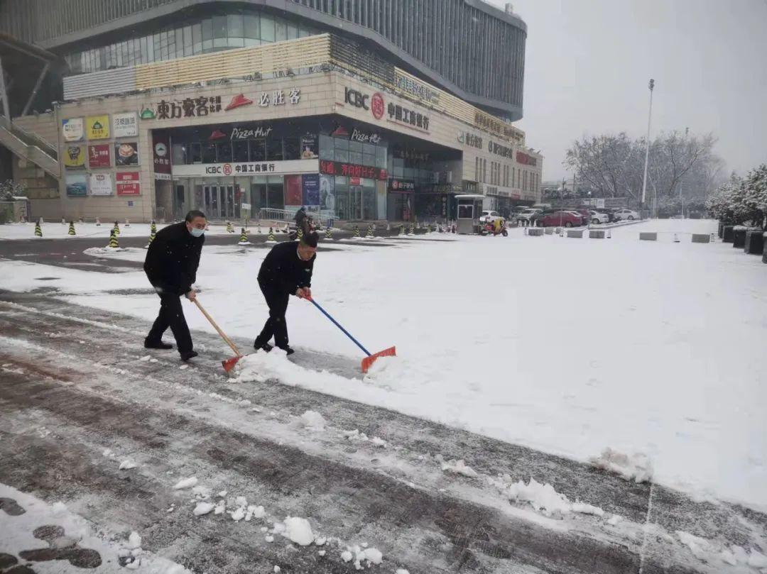 總部物業(yè)安全中心及各地市門店的黨員紛紛發(fā)揮模范帶頭作用,根據(jù)雪情、積雪量,分區(qū)域、劃重點(diǎn)、逐路逐段做好商場周邊的積雪清掃與防滑工作,確保車輛和人行道通行順暢。大家以“隨掃隨清、不留雪堆”為原則全面、徹底鏟雪除冰,以實(shí)際行動在風(fēng)雪中傳遞溫暖和正能量,路過的群眾紛紛點(diǎn)贊。
