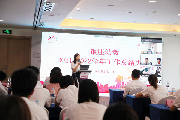 7月30日,銀座幼教通過線上線下相結(jié)合的方式召開2021-2022學(xué)年工作總結(jié)會(huì)議。銀座幼教黨總支書記、董事長袁霞,黨總支委員、總園長孟凡庸,黨總支委員、財(cái)務(wù)總監(jiān)黑建霞,黨總支委員、副總園長張麗、王希出席會(huì)議。