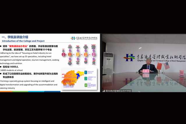 12月21日,由中國教育國際交流協(xié)會舉辦的中美職教院校長對話暨中美百千萬院校云攜手會議在線上舉行。中國教育國際交流協(xié)會副秘書長余有根、美國加州圣巴那迪諾郡長海德曼、青島酒店學(xué)院黨委書記李達(dá)出席會議。