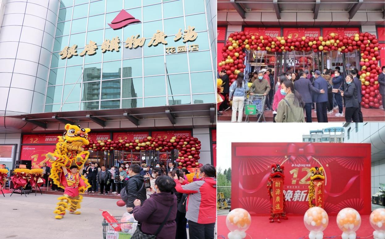 上午10:18,銀座花園店正門廣場,舞獅獻(xiàn)瑞、氣球騰飛,“銀座花園店重裝開業(yè)煥新顏暨12周年慶”火熱開啟。