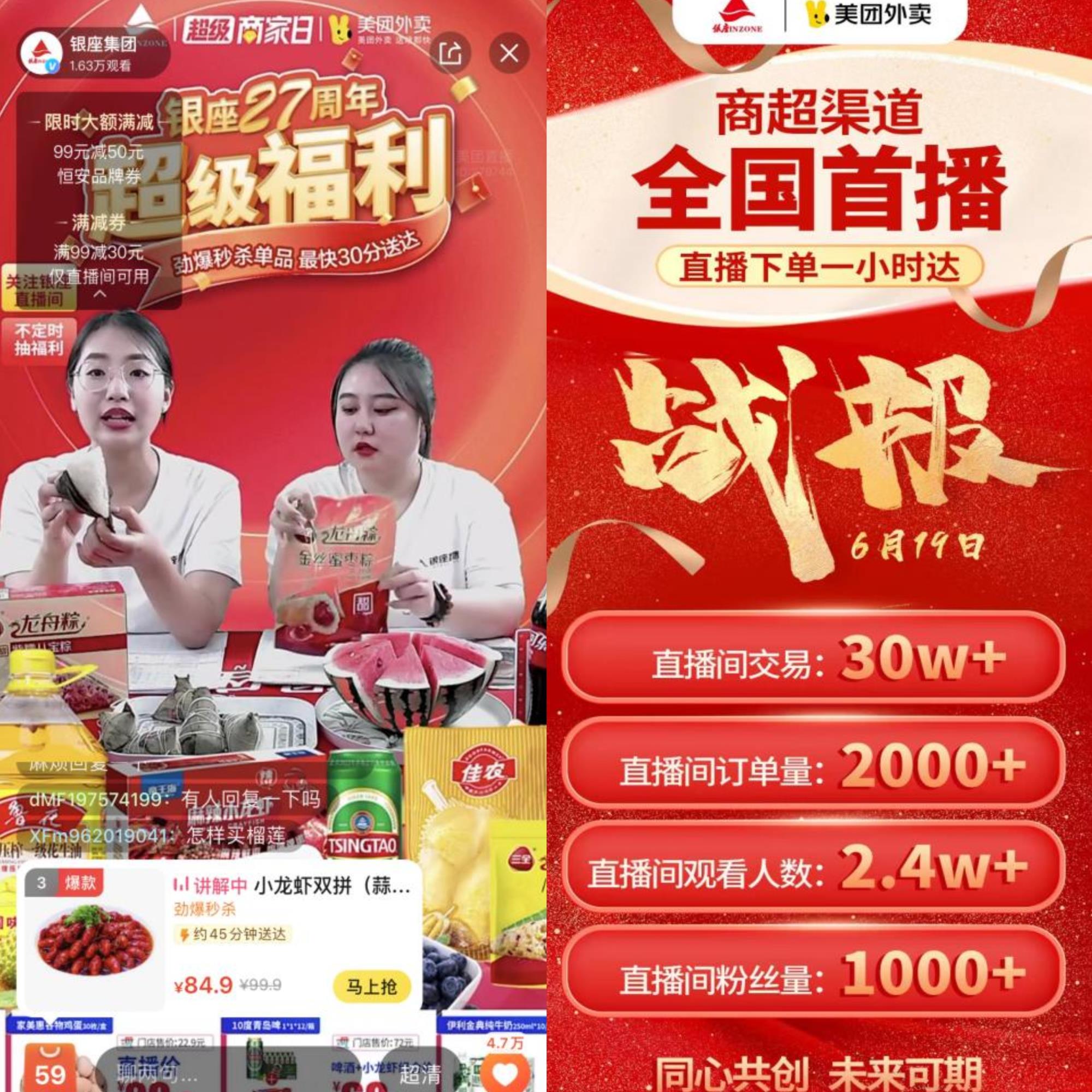 近日,為探索新場景營銷,打造“直播下單、一小時達”的即時零售新玩法,銀座集團聯動美團超市閃購開展首場直播活動。