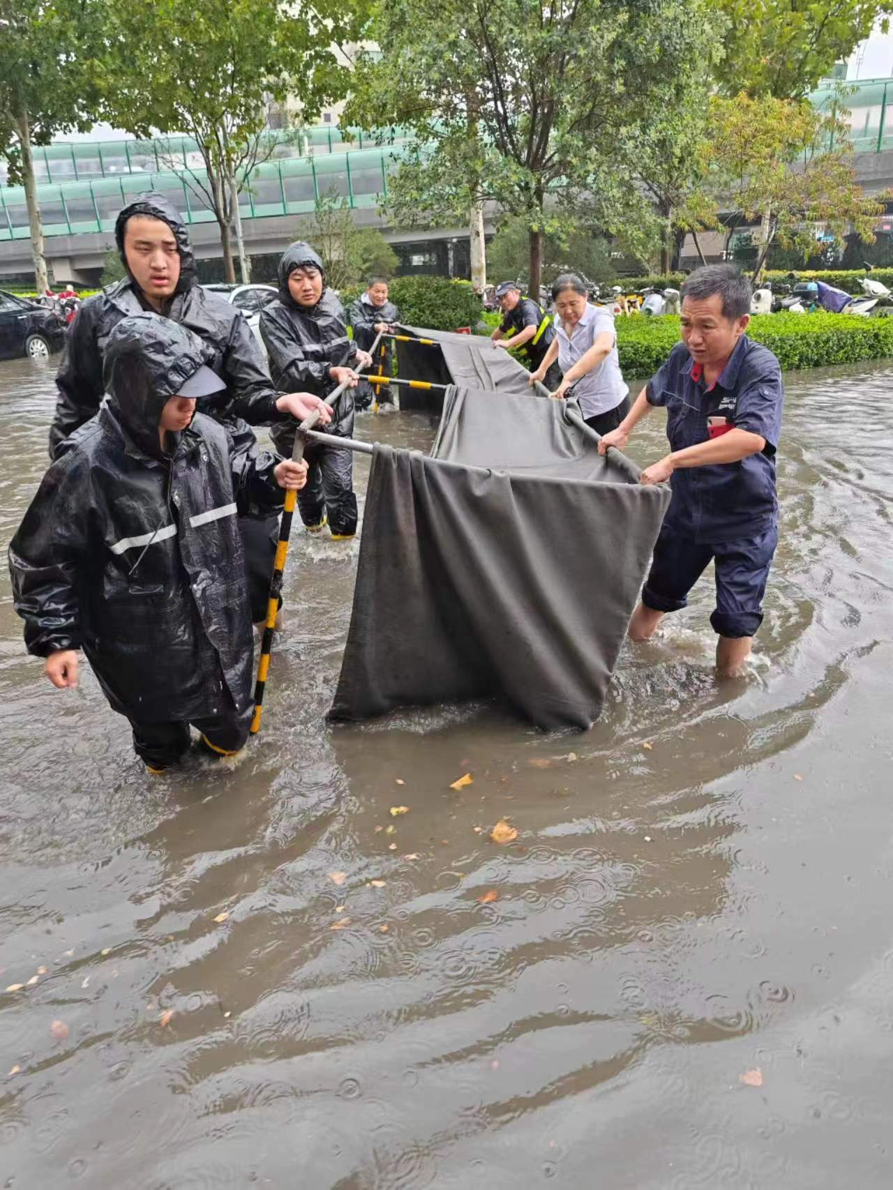 暴雨來臨后,濟(jì)南銀座好望角項(xiàng)目由于地勢低洼出現(xiàn)積水情況,項(xiàng)目迅速啟動(dòng)應(yīng)急預(yù)案,在車庫等重要位置設(shè)置隔水板和沙袋,疏通項(xiàng)目外圍道路排水系統(tǒng),防止雨水倒灌。經(jīng)過奮戰(zhàn),積水逐漸退去,未造成重大損失。