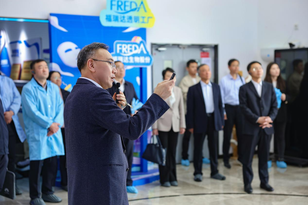 在參觀過程中,福瑞達黨委委員、副總經理、福瑞達生物股份總經理高春明介紹了企業的整體情況。2023年,福瑞達生物股份實現營收24.16億元,同比增長22.71%,成功打造頤蓮、璦爾博士、伊帕爾汗、善顏等多個知名化妝品品牌。公司新建的重組膠原蛋白工廠已于2023年12月正式投產,推出了公司首個醫美品牌珂謐,未來將成為企業的第二增長曲線,推動企業從行業頭部企業向行業頂部企業邁進。