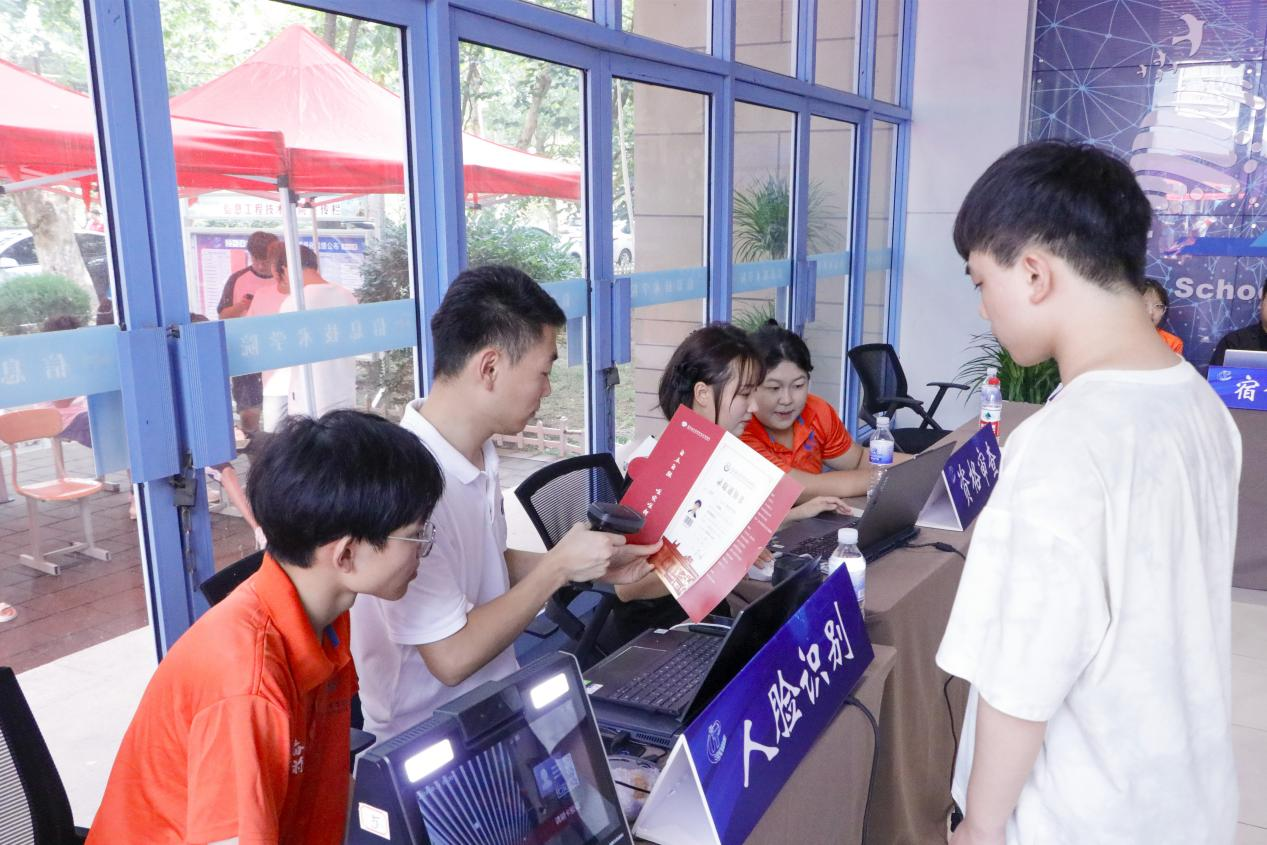 報到前,新生通過在線平臺完成繳費、查詢分班情況、選取宿舍床位,入學手續“碼”上辦;入校后,新生現場刷臉進行身份核驗,“一鍵入?!焙唵胃咝?。學校還通過微信、微博、抖音等新媒體平臺開展全方位宣傳,為新生入學提供無微不至、便捷通暢的高效服務;通過大數據平臺實時更新新生報到入校統計,動態“直播”報到進程。