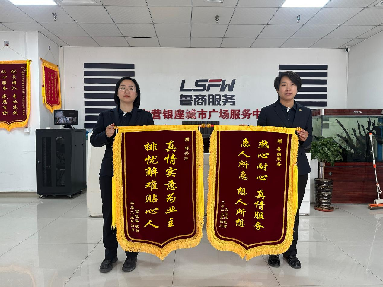 “感謝咱們服務(wù)中心的積極救助,避免了我們家的財(cái)產(chǎn)損失。”4月17日下午,東營銀座廣場15號樓業(yè)主高先生手持兩面錦旗來到服務(wù)中心,向管家懷莎莎和服務(wù)中心全體員工表達(dá)謝意。