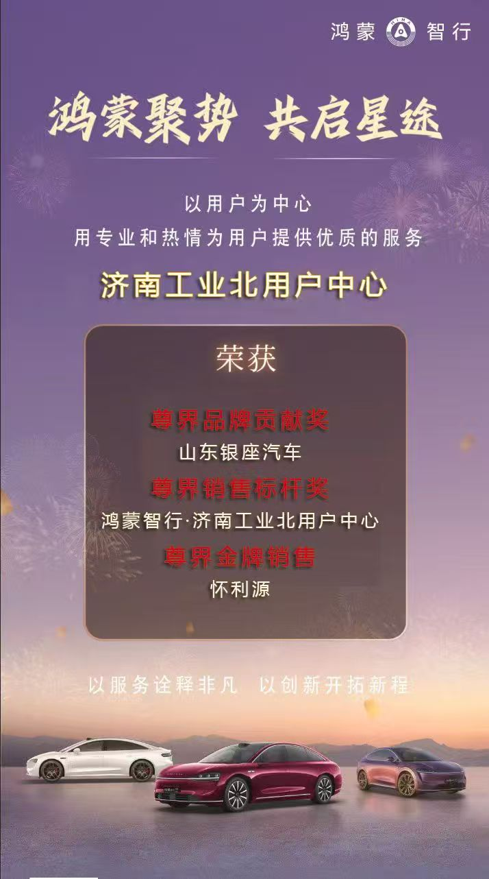 這份滿載榮譽的“期中答卷”,是銀座汽車鴻蒙智行濟南雙店銳意進取的見證,也是邁向更高峰的起點。未來,銀座汽車鴻蒙智行將以精準運營為引擎,以用戶需求為導向,在創新服務的賽道上合力突破,共繪銀座汽車新能源賽道輝煌篇章。