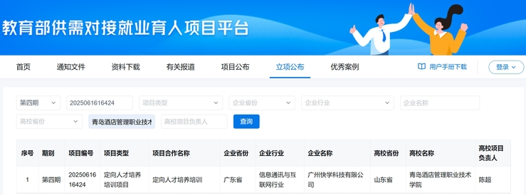 近日,教育部公布第四期最新供需對(duì)接就業(yè)育人項(xiàng)目名單,青島酒店管理職院文旅學(xué)院與廣州快學(xué)科技有限公司合作申報(bào)的“定向人才培養(yǎng)培訓(xùn)項(xiàng)目”入選。此次合作是深入踐行“企業(yè)出題、校企共答、市場(chǎng)閱卷”產(chǎn)教深度融合理念的生動(dòng)實(shí)踐,為職業(yè)教育創(chuàng)新型人才培養(yǎng)模式落地提供了鮮活案例。